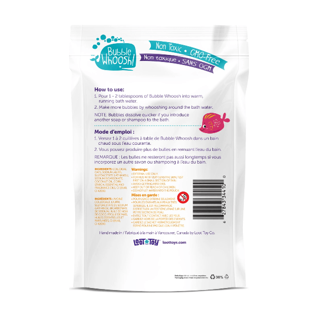 - One pack of Bubble Whoosh makes 10-12 baths