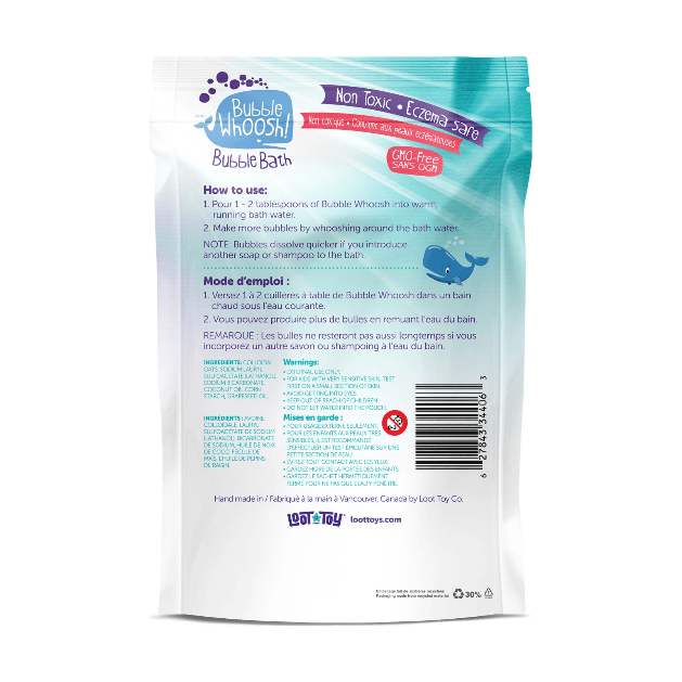 Bubble Whoosh CLEAR is a hypoallergenic, eczema safe moisturizing foaming bath powder, packed with ingredients known for their beneficial effect on the skin. Just one heaped tablespoon creates a lather-rich bubble bath . All plant-based, vegan and gluten-free.