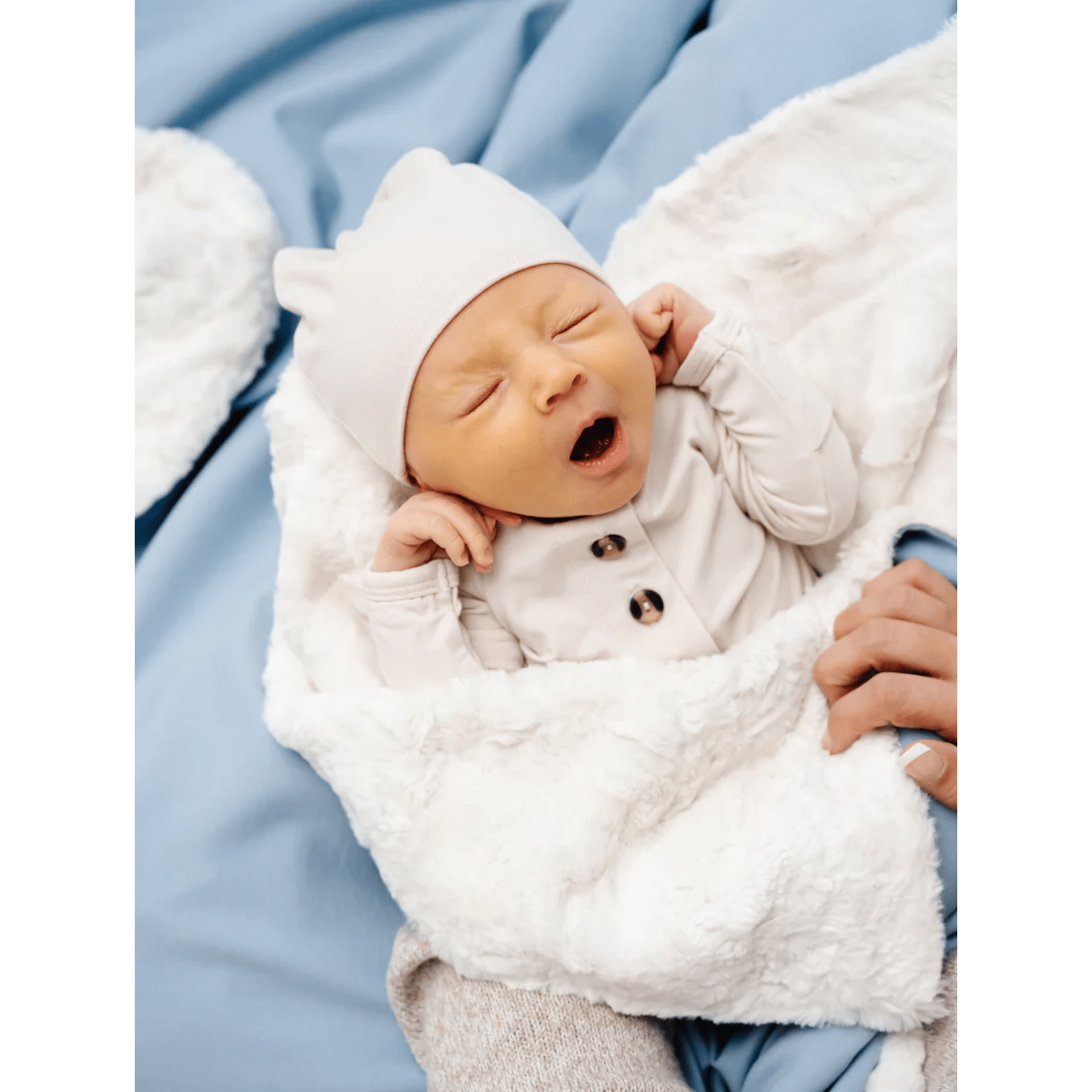 We call it “cozy” for a reason. Lou Lou softness plus high quality minky backing makes for your babe’s new favorite, cozy blanket. This blanket is made for cuddling! The mini size is ideal for newborns and on-the-go, and the large is generously sized to grow with your babies and the whole family (mamas included).