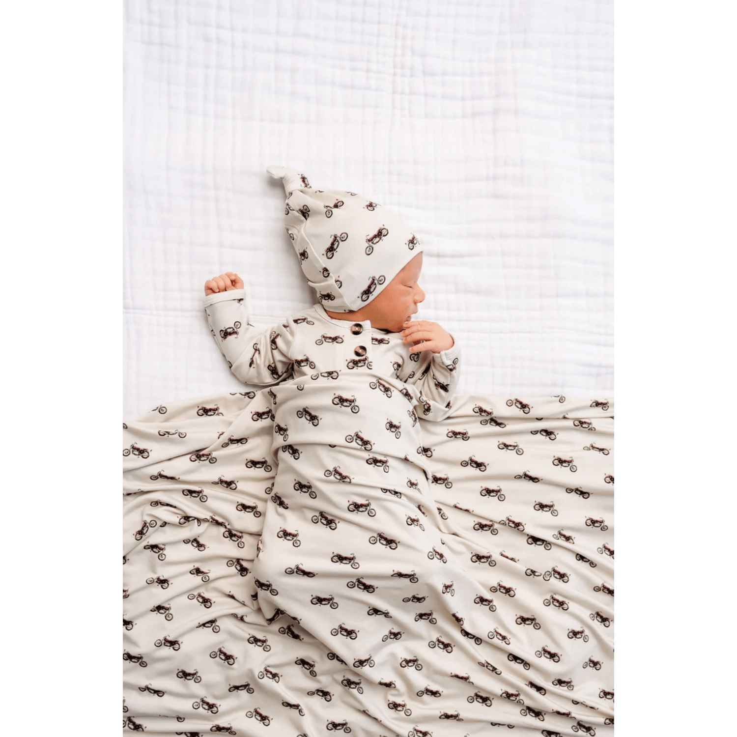 The easiest tie-bottom outfit for day or night. Made for hassle-free diaper changes and gentle dressing, they designed this with a button-down front and tie bottom for simple closure (no more snaps at 2 am!). Fold-over wrist cuffs are the most thoughtful finishing touch.