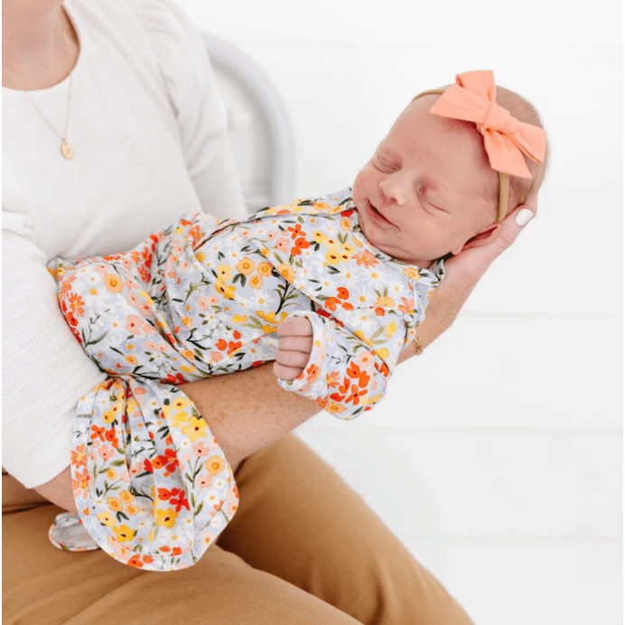 The easiest tie-bottom outfit for day or night. Made for hassle-free diaper changes and gentle dressing, they designed this with a button-down front and tie bottom for simple closure (no more snaps at 2 am!). Fold-over wrist cuffs are the most thoughtful finishing touch.