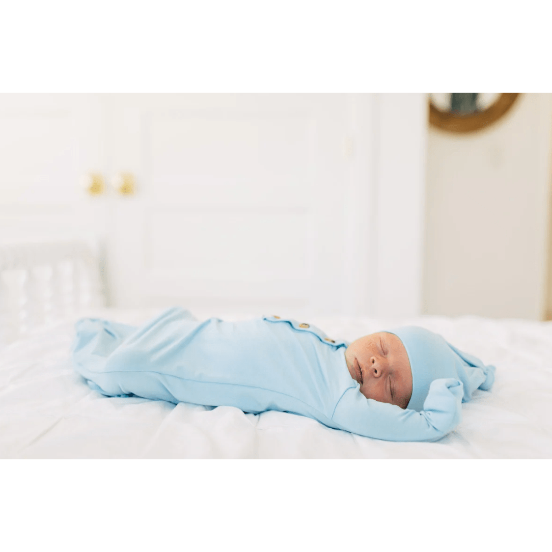 The easiest tie-bottom outfit for day or night. Made for hassle free diaper changes and gentle dressing, they designed this with a button-down front and tie bottom for simple closure (no more snaps at 2am!). Fold over wrist cuffs are the most thoughtful finishing touch.