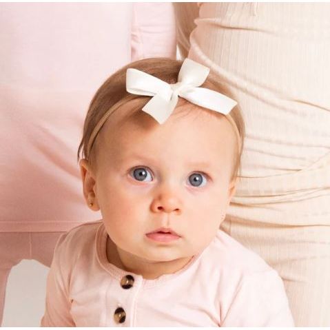 Dress your little one up with our satin bows! Handmade by local moms from high-quality satin. This is the perfect bow for your darling little girl! Each bow is hand tied and is attached to a nylon headband. All bows are secured so they do not come undone!