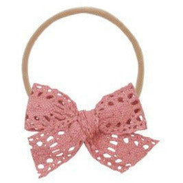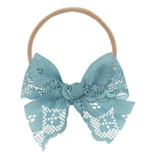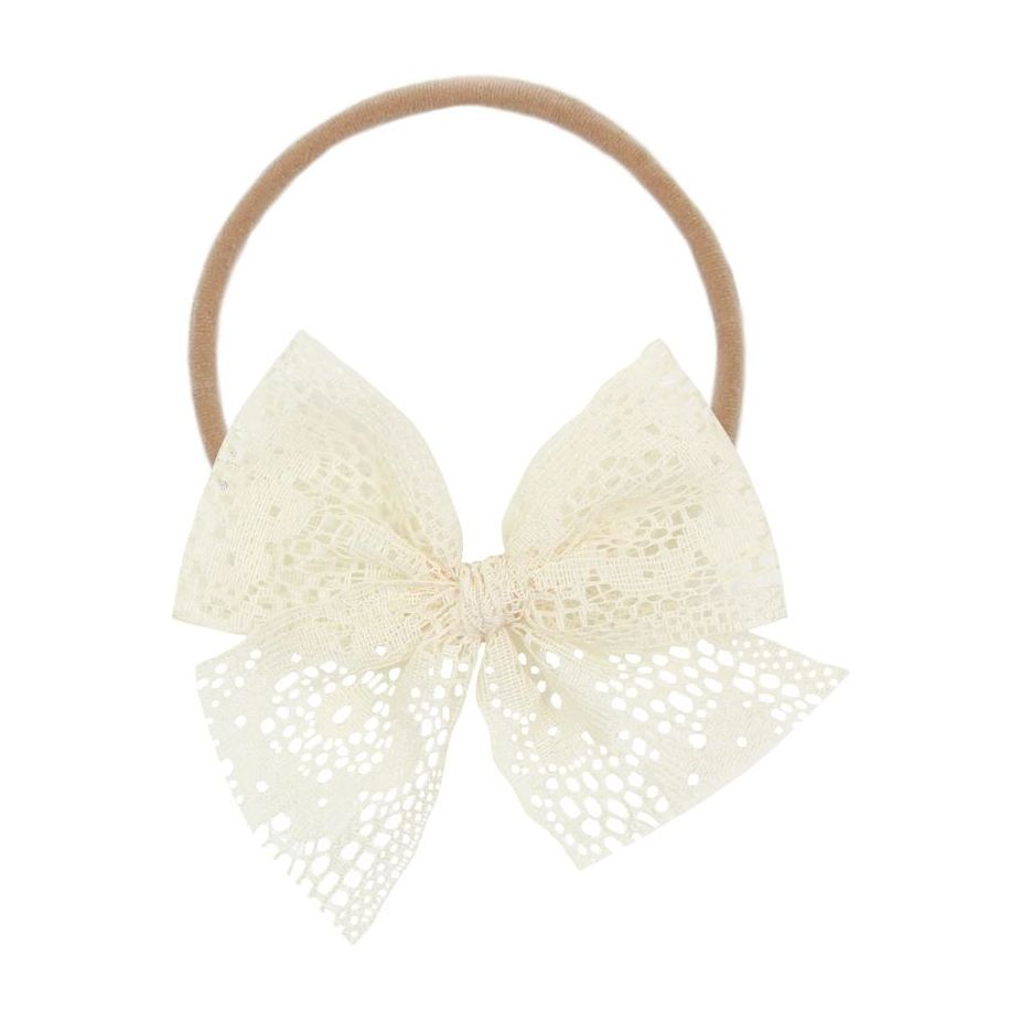 Truly one of a kind! Each bow is hand-tied by local moms with one-of-a-kind vintage lace and attached to a one-size-fits-all nylon headband. All bows and edges are secured and sealed so they don’t come undone.