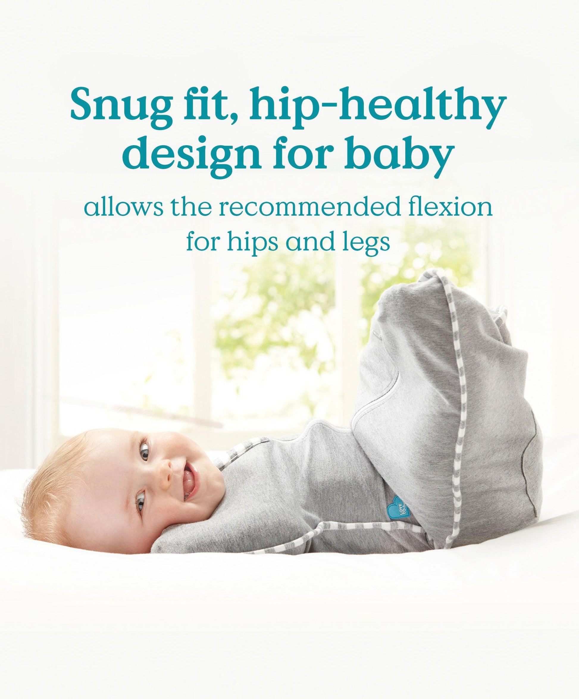 The soft, clingy fabric wraps around baby to replicate the feeling of being in the womb, whilst the ARMS UPTM hip-healthy design aids their natural sleeping position.