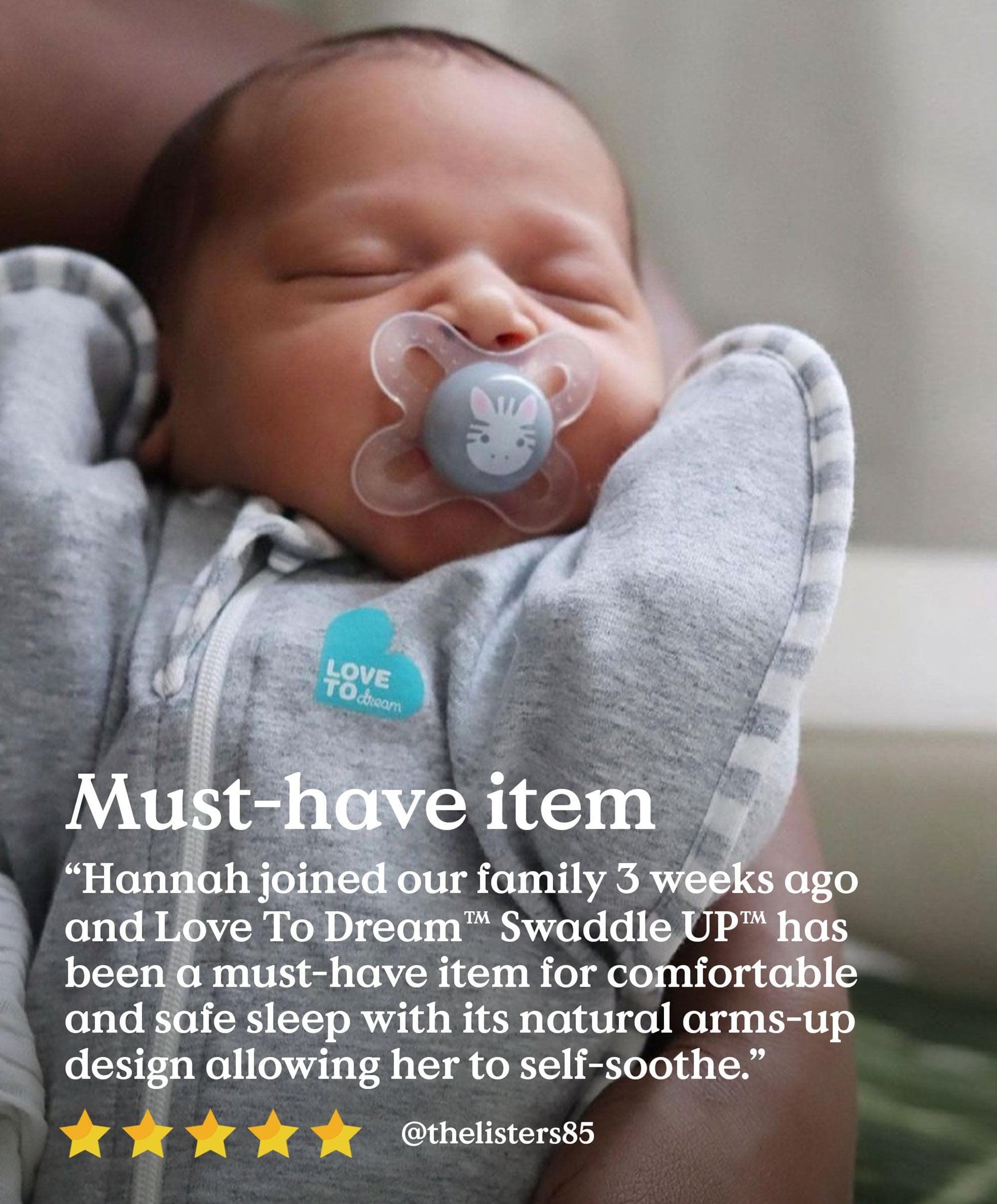 - Designed based on research in babies sleep and development in the womb with the ARMS UPTM position allowing babies to soothe themselves to get to sleep, by touching their face and sucking on their hands.