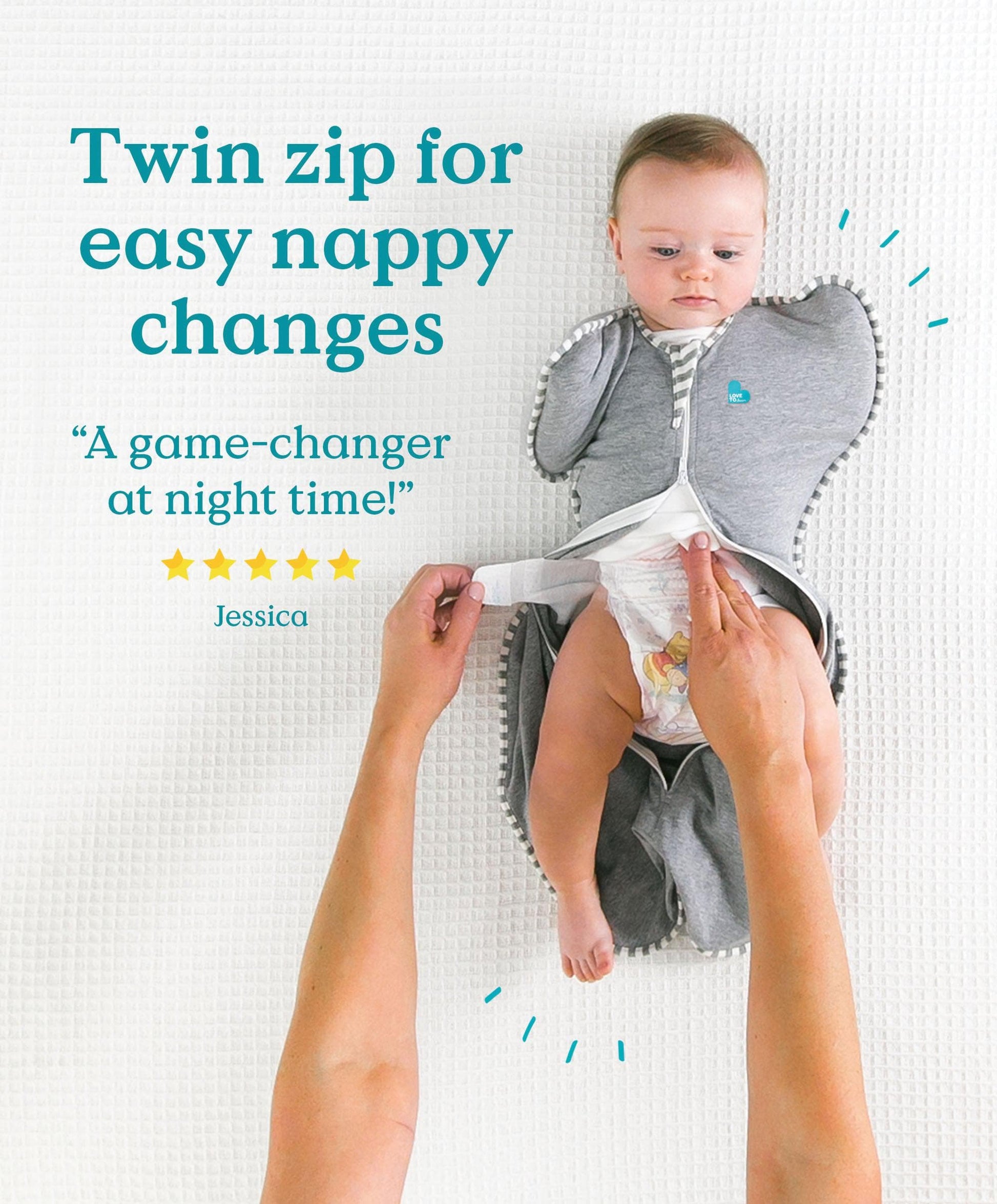 - Easy to use- legs in, arms in and zip up, with the two-way zip allowing you change your baby's nappy without waking them.