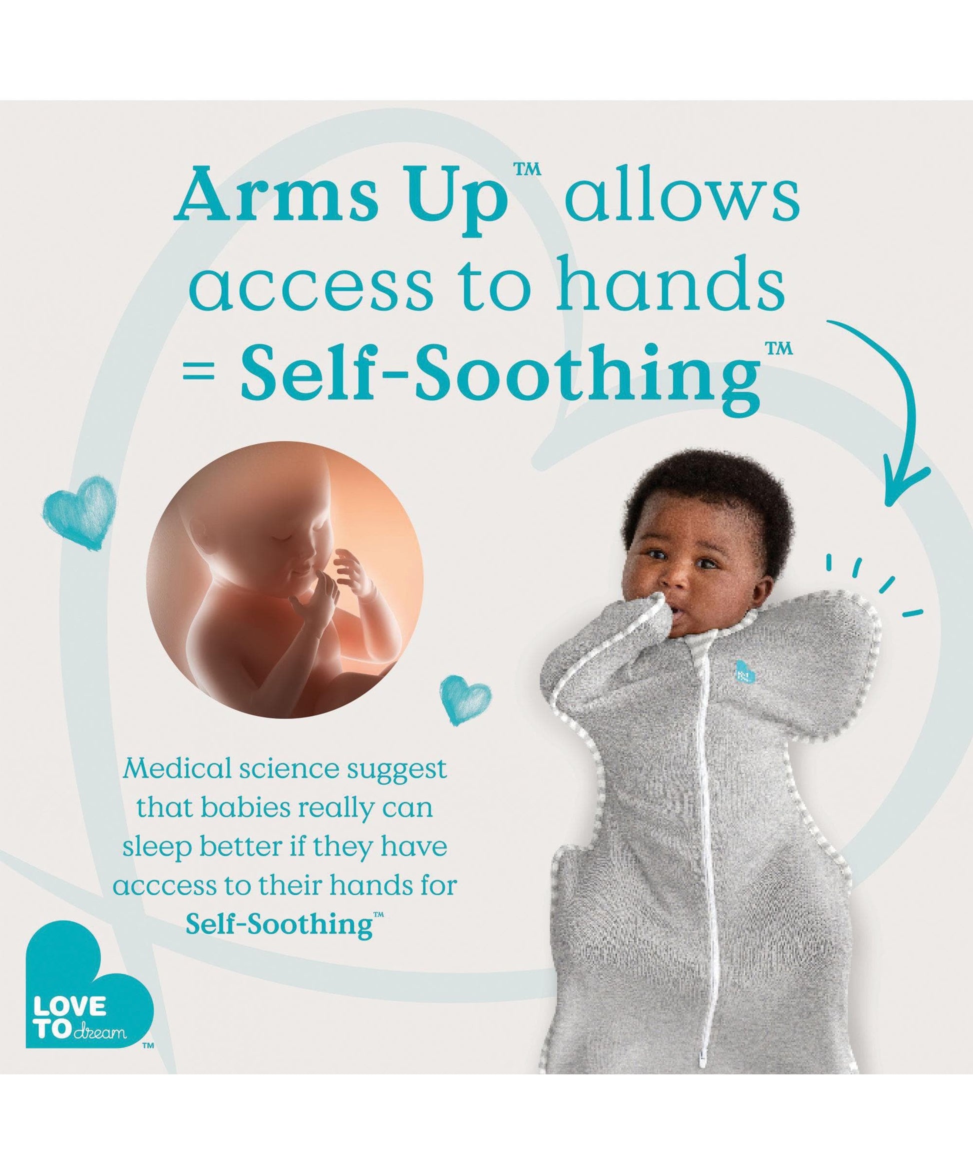 Combining the benefits of traditional swaddles and the ease and safety of a sleepsuit, the Love To Dream Swaddle Up™ Transitional Bag is the perfect tool to reduce sleepless nights. The soft, clingy fabric wraps around baby to replicate the feeling of being in the womb, whilst the ARMS UP™ hip-healthy design aids their natural sleeping position.