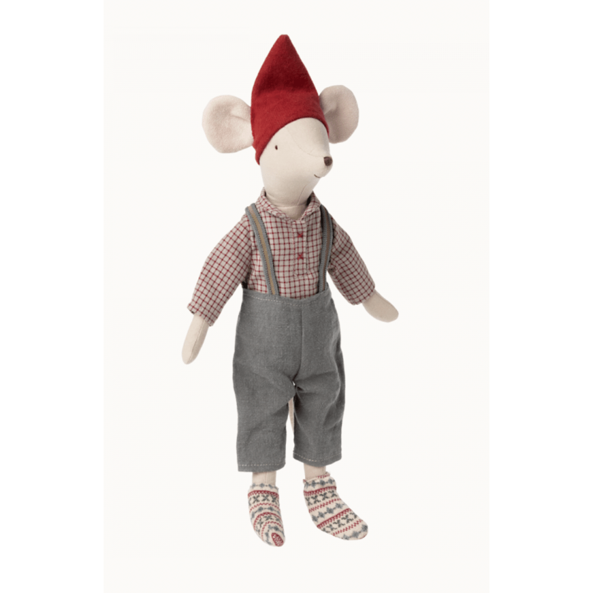 A medium size mouse dressed in cozy Christmas clothes ready to celebrate the wonderful days of Christmas.