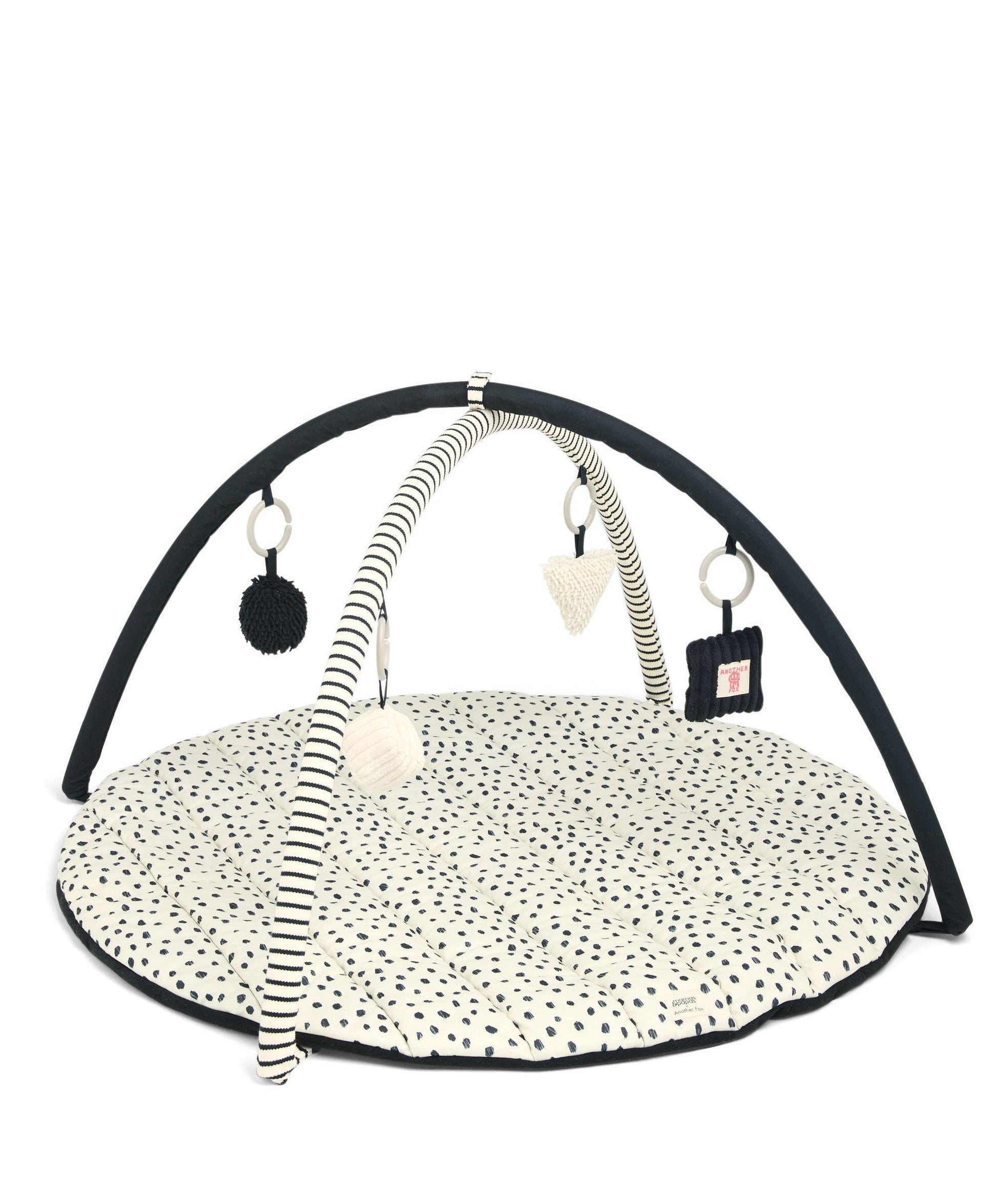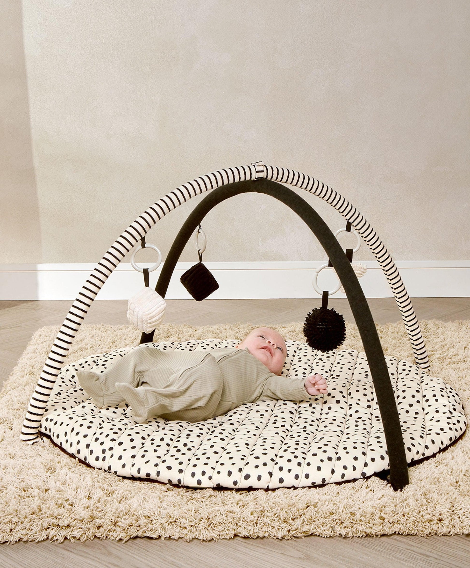 Featuring high contrast black and white patterns that help stimulate baby’s senses and support visual development, this activity-packed playmat will keep curious cubs wildly entertained. Designed in collaboration with independent fashion brand Another Fox, its fabrics are emblazoned with bold graphic and animal print patterns, making it perfect for both tummy time fun and supervised chill time. Baby will love discovering a world of sounds, patterns and textures with visually stimulating and tactile fabrics, plus crinkles, rattles, squeakers and soft hanging toys to explore.