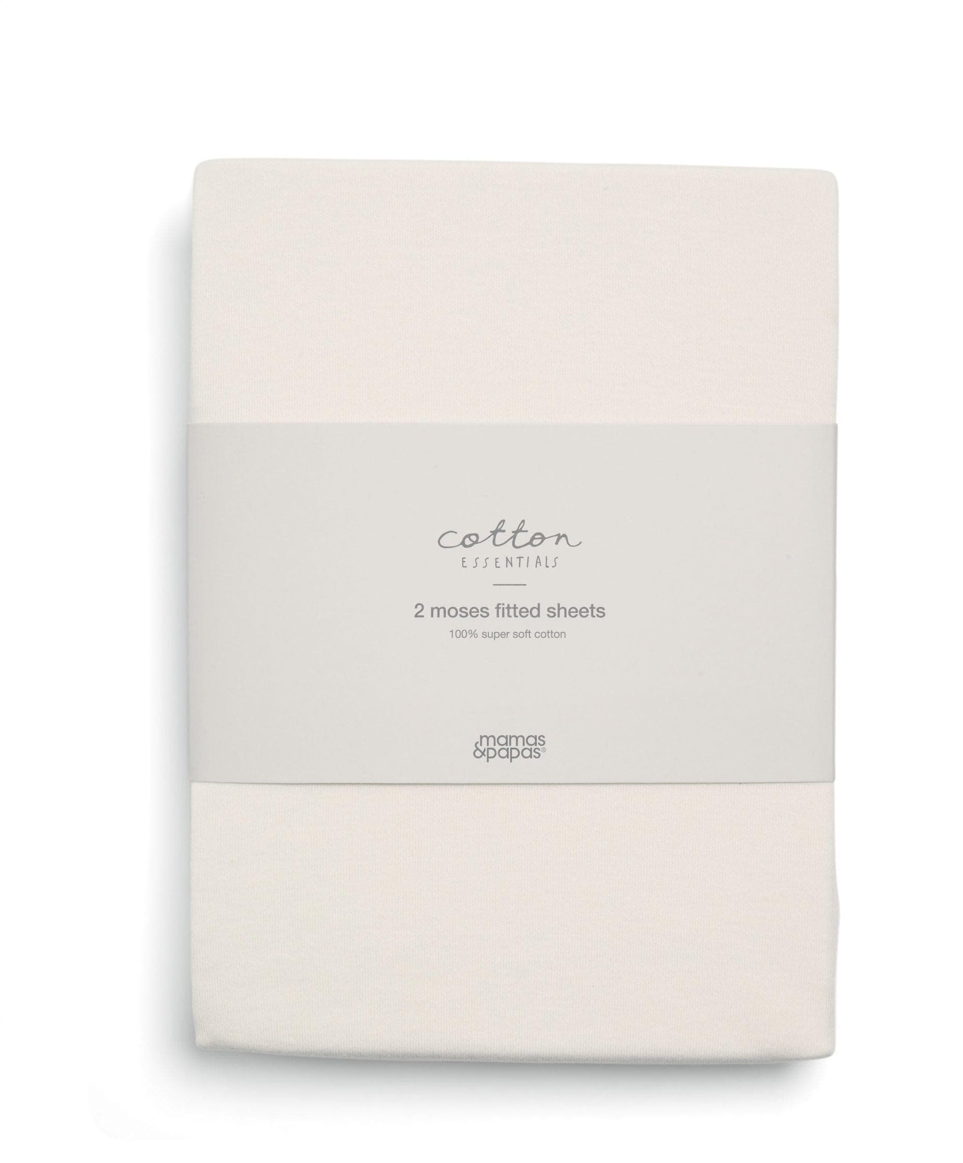 2-pack of fitted cream Moses Basket sheets, designed to fit our standard Moses Basket mattress. Made from 100% cotton. Machine washable.