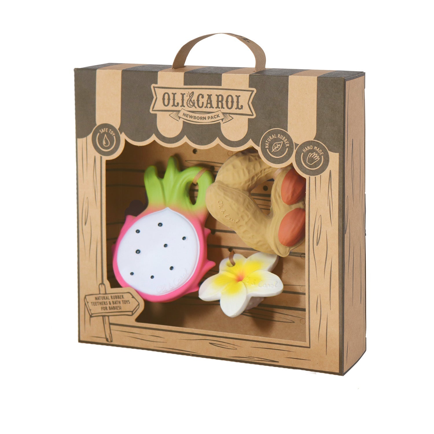 Tropical combo! A colorful set is here to stay: two baby teethers for babies and a mini teether for newborns. A gift for babies 0+ including three natural rubber teethers full of textures and ergonomic shapes that will stimulate babies senses. The best option to soothe teething gums that will grow with babies from newborn stage onwards. Comes with a custom-made packaging, ready to gift!Β