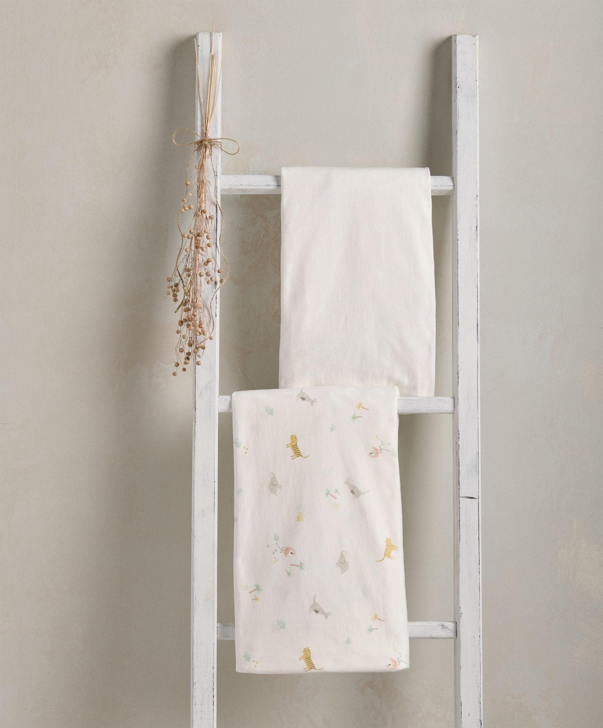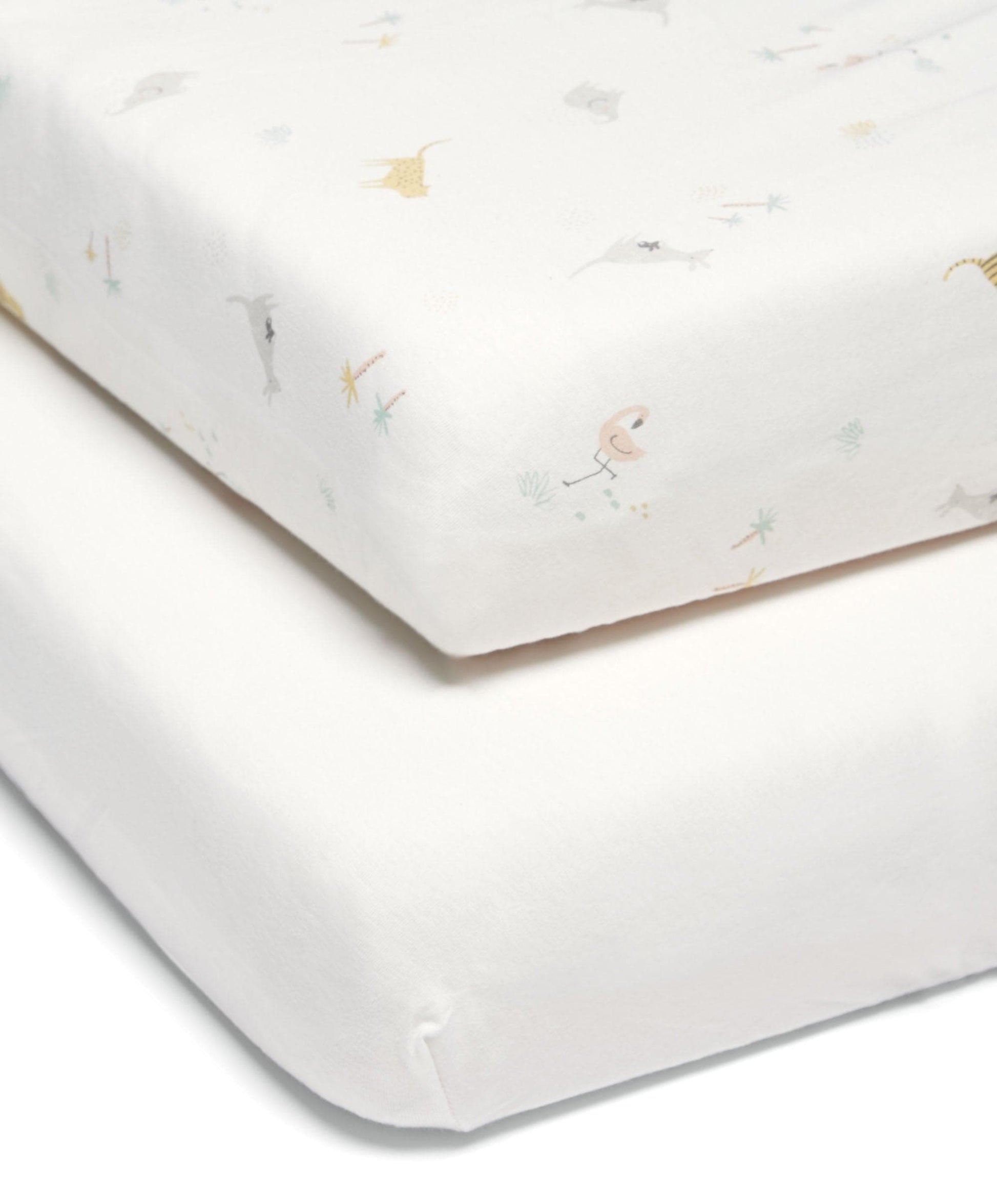 2-pack of fitted sheets, in plain and Safari-inspired prints. Made from 100% soft cotton. Elasticated fit designed to fit most cotbed mattresses. Machine washable.