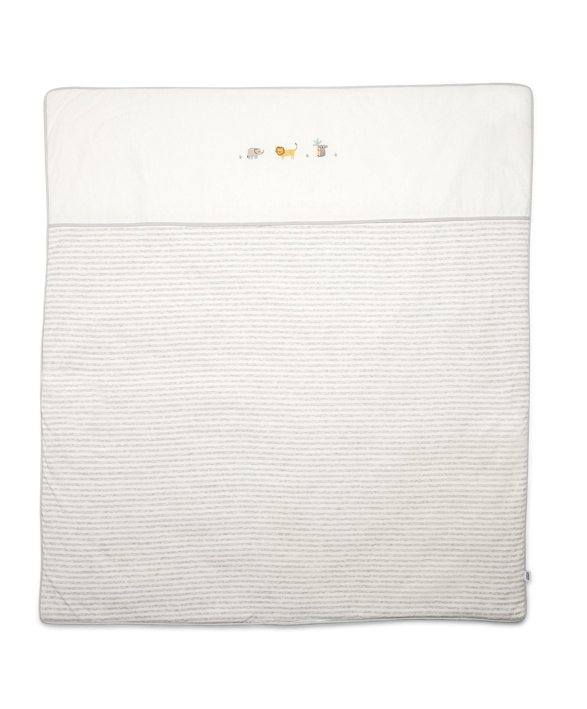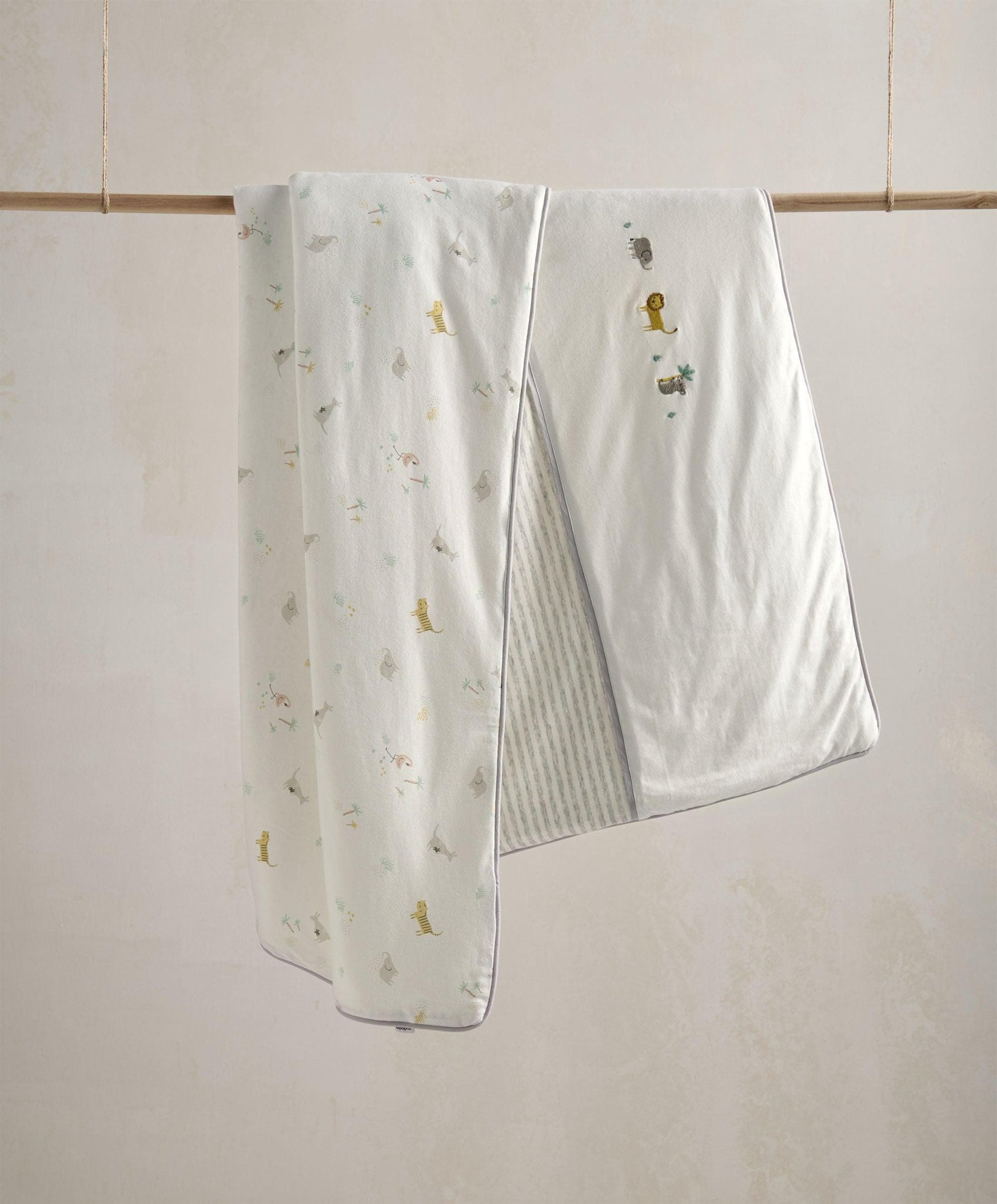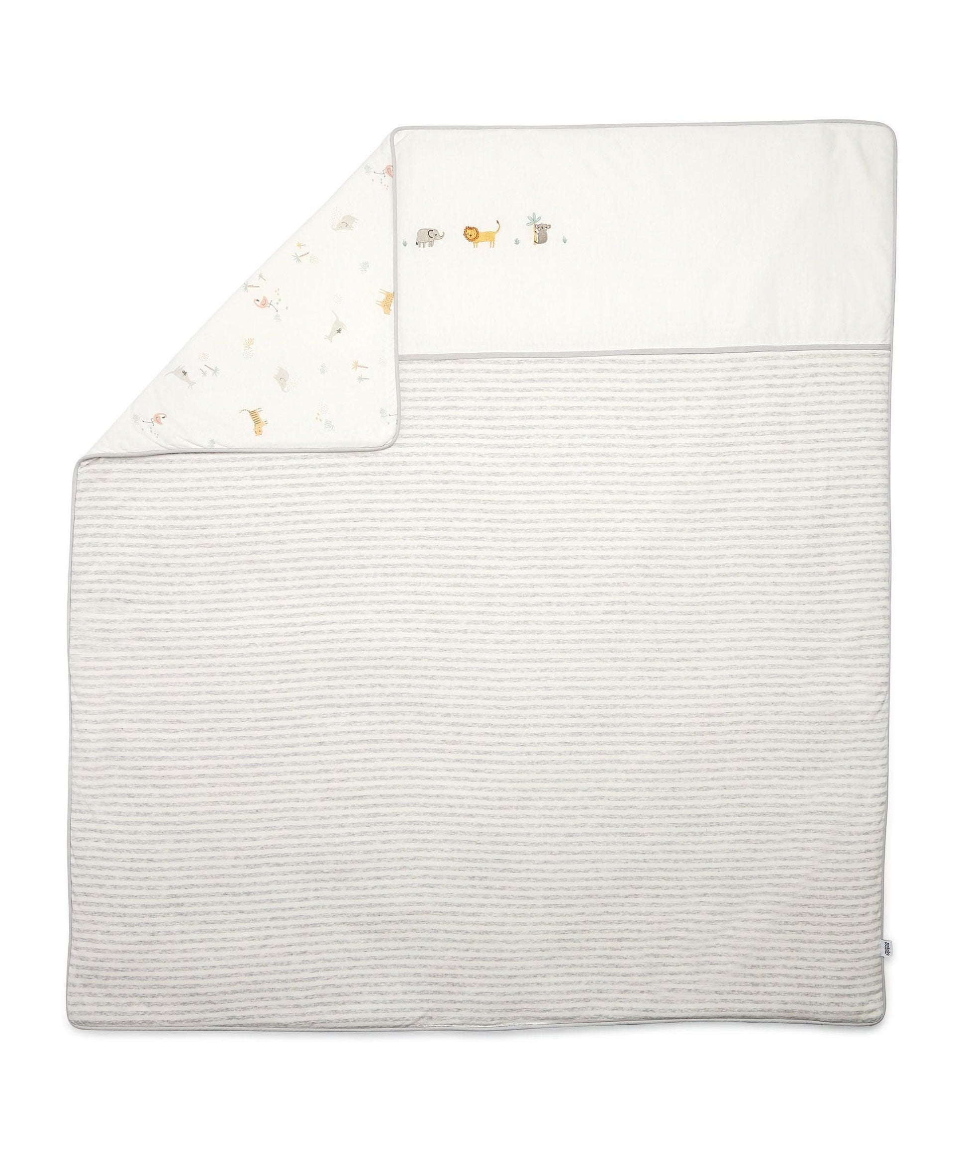 2.5 Tog grey and white striped quilt. Crafted from super-soft 100% cotton. Finished with embroidered character detail.