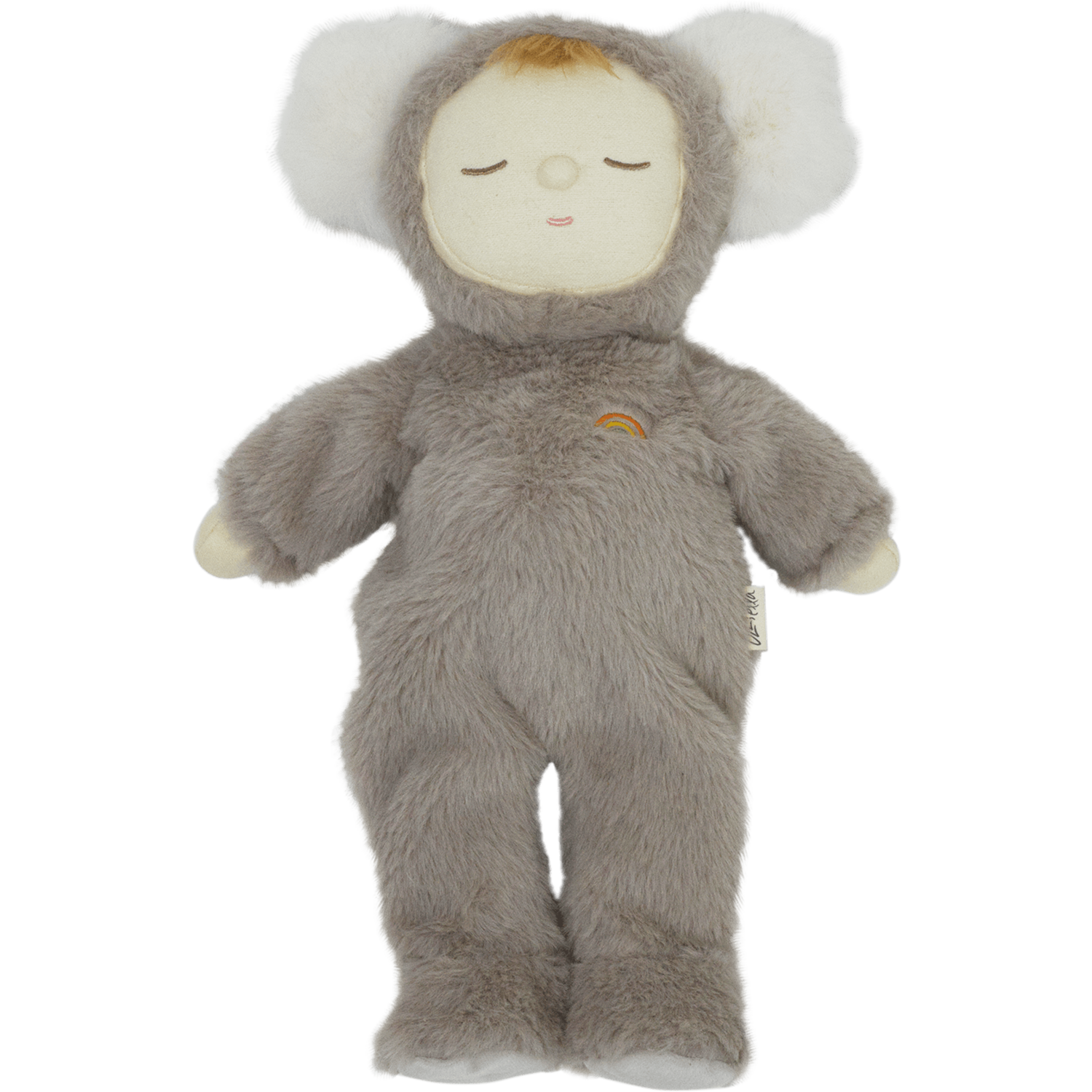 Koala Moppet, so cuddly and cute, loves to doze in its soft fluffy suit. Made for snuggles and snoozy gumtree days, this velvety little Cozy loves to play!Koala Moppet is posable, made from the plushest outer and features the sweetest embroidered face with a little tuft of hair. Each Cozy Dinkum wears a non-removable suit with two soft furry ears and a rainbow right over their heart.