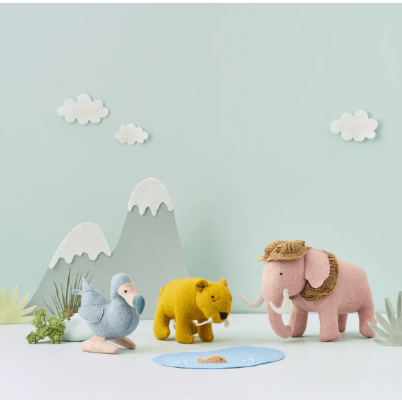 Handmade from a soft wool blend with embroidered features, these Extinct Animal pals are the perfect size for small hands and are wonderful prompts for hours of imaginative play.