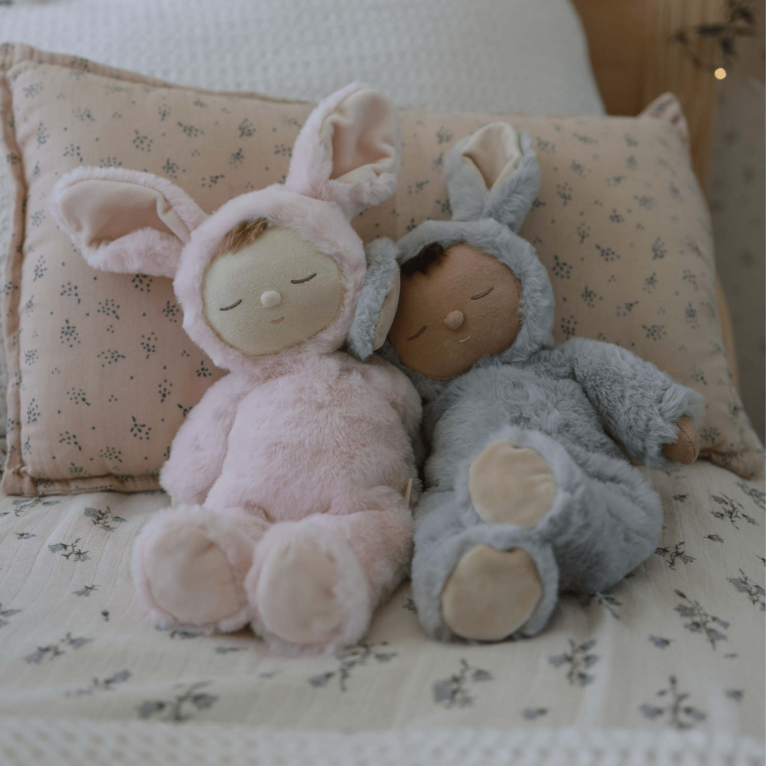 • During playtime, keep Bunny Pip close with a Dinkum Doll Carrier or Dinkum Doll Cot