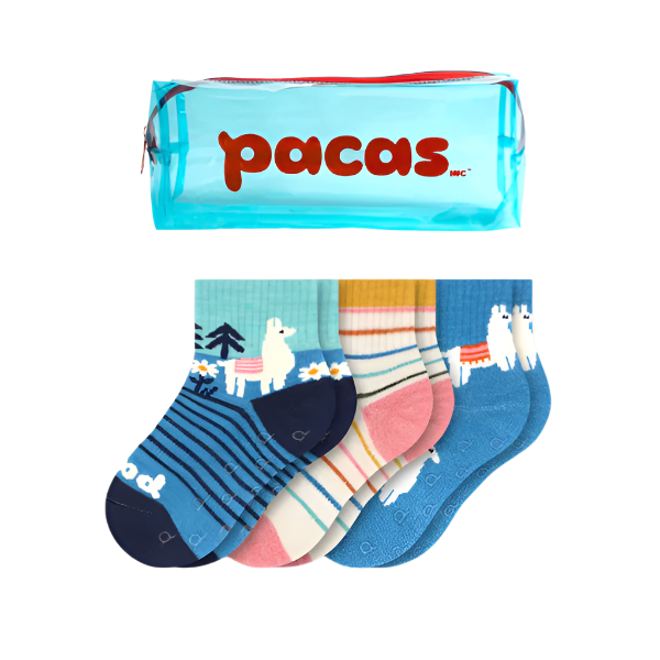 Pacas Toddler Gripper Socks 3 Pack- Alpaca/Stripe