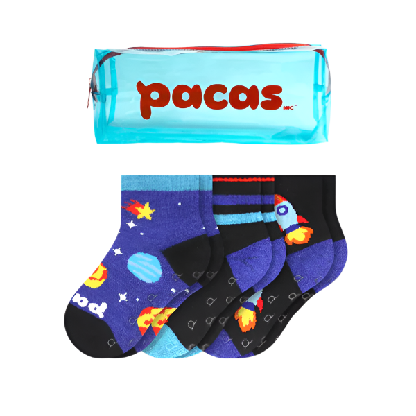 Pacas Toddler Gripper Socks 3 Pack- Space
