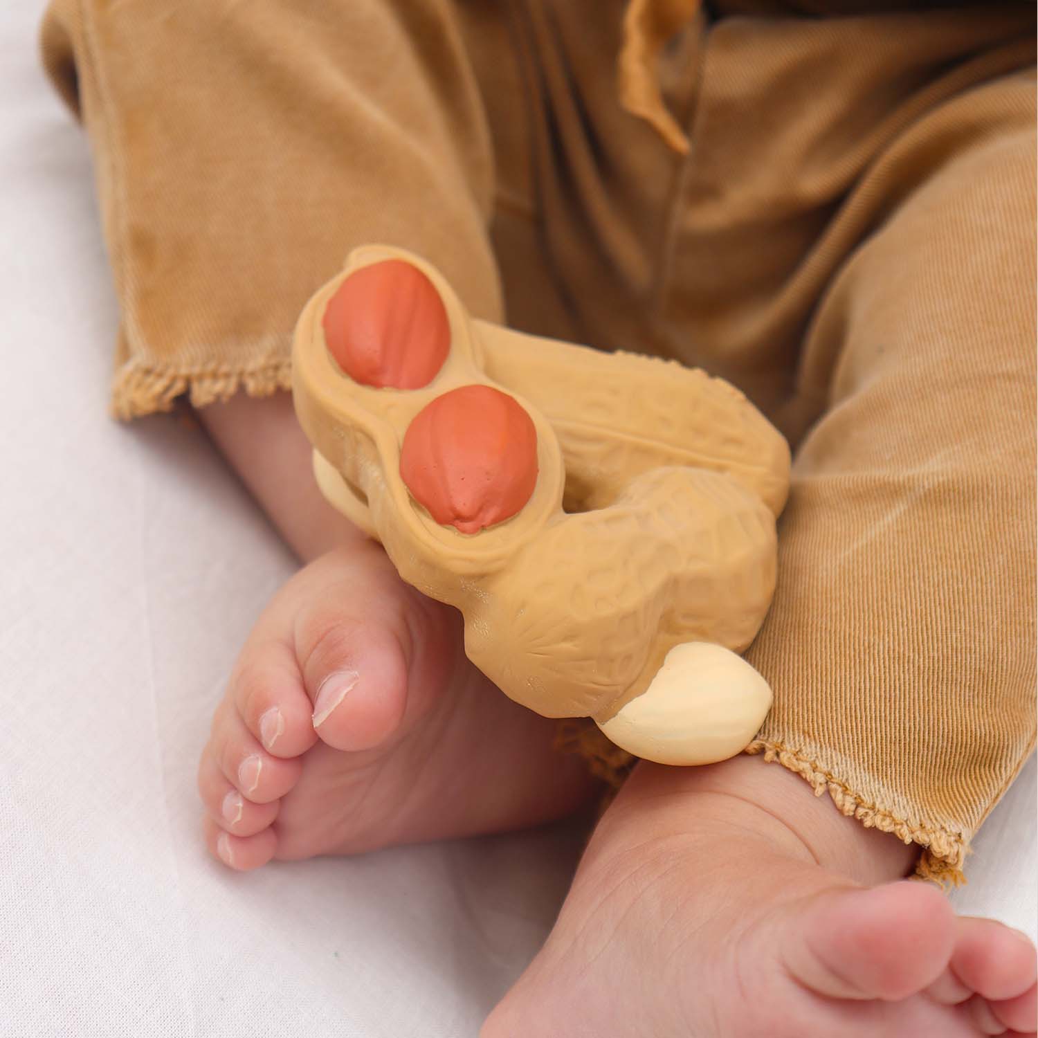 Paco the Peanut is the new chewable baby toy for teething, bath time and sensory play. It’s easy-to-hang round shape makes it perfect for little ones to hold and chew everywhere they go while relieving teething gums! - Healthy tip: Did you know that eating peanuts helps to protect our heart? Introduce little one into nature & fruits that surround them!