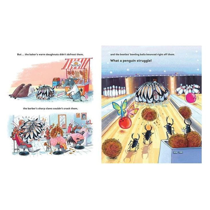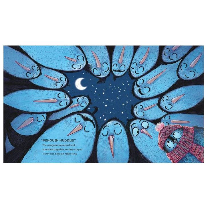 All day long the penguin colony plays and plays, and when the sun goes down and the night grows cold and dark, they squeeze and squish together (“penguin huddle!”) to stay warm and snug. But one morning, after a freezing gale, the penguins find themselves stuck, frozen together like a giant penguin ice pop. When no one in the Antarctic can unstick them (“penguin muddle!”), Pipsqueak, the smallest penguin of all, leads his fellows out of their snowy home to a city across the sea in search of help. Whimsical adventures ensue in this global giggle-fest teeming with colorful details—a warm, wintry treat for fans of penguins, playful antics, and celebratory cuddles.