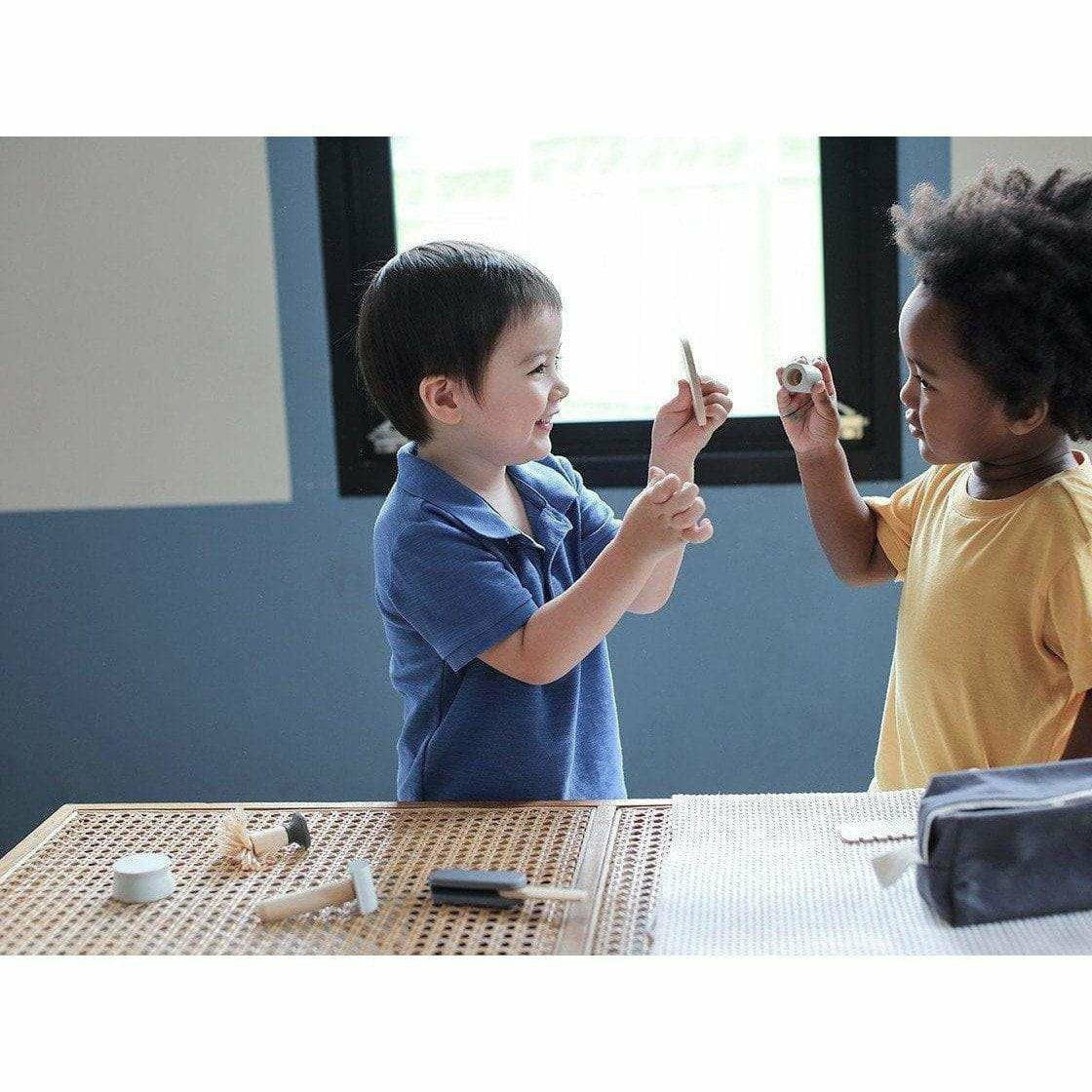 Spice up your morning routine with the PlanToys Shave Set! Complete with a carrying bag, comb, knife, trimmer, bowl and brush, razor, mirror and aftershave bottle, this toy is the perfect addition to any child’s pretend-play collection