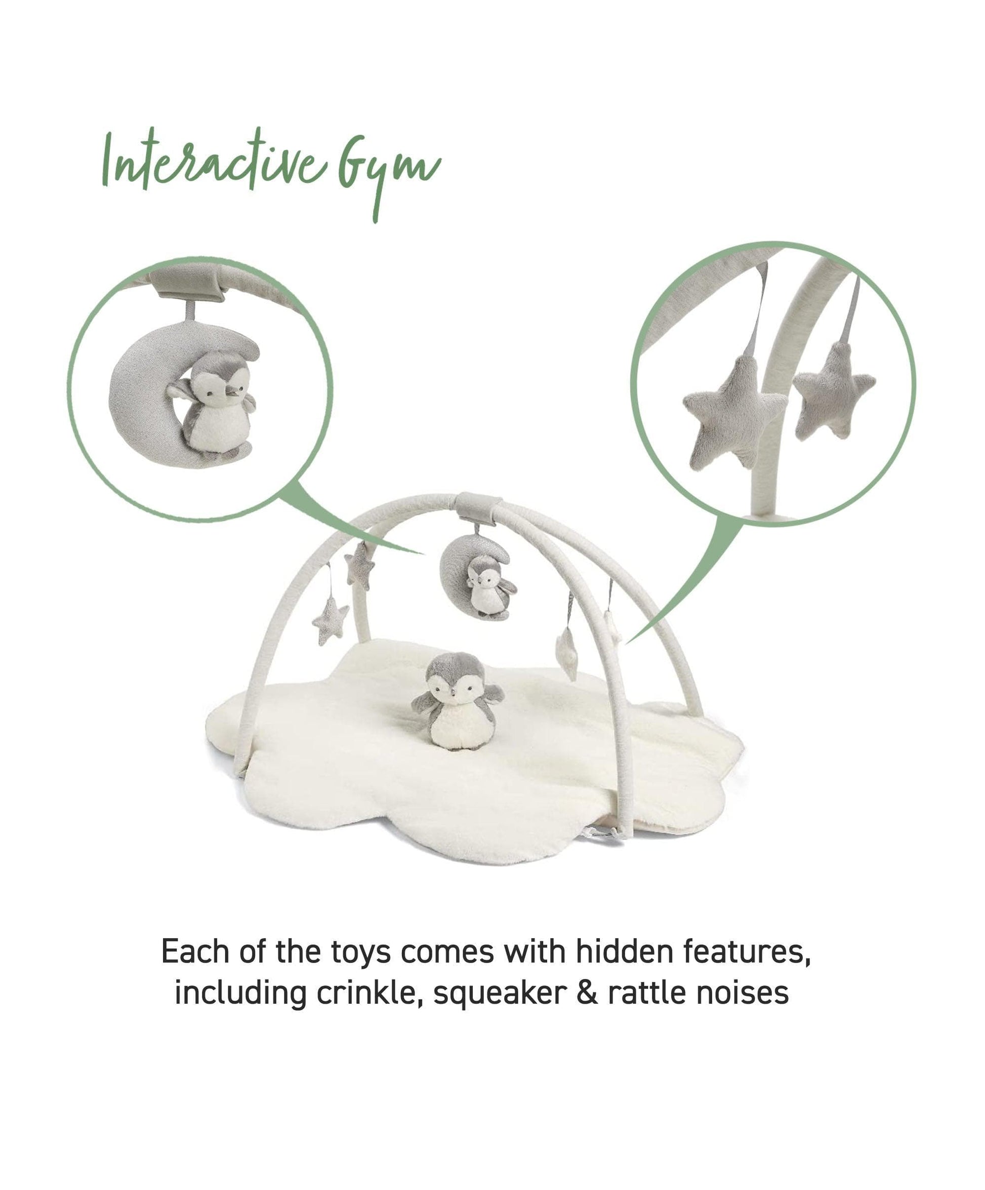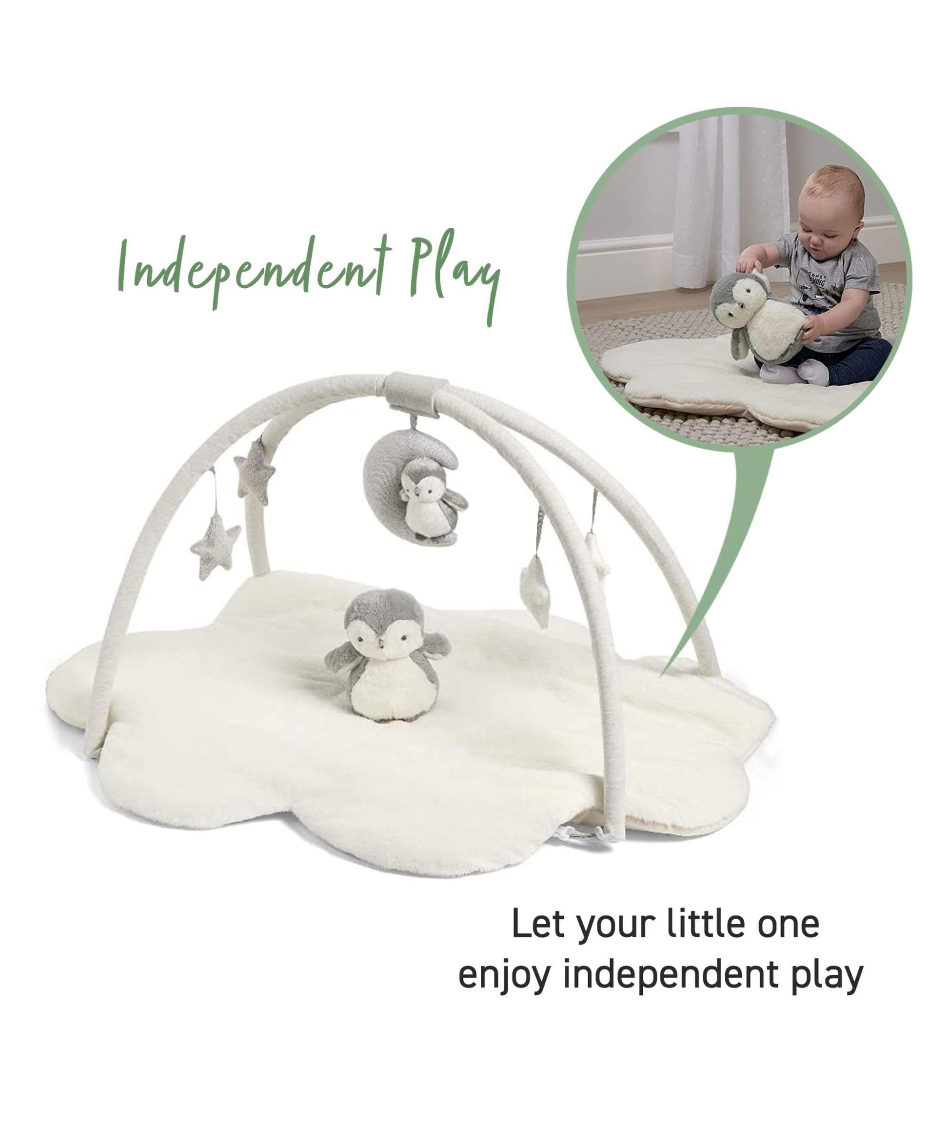 The perfect spot for some chill out time, independent play or to be entertained while you watch on! From the super soft padded mat notice how they discover hidden features - a rattle, crinkle texture, musical functions and detachable toys – before playing with their sweet penguin pal.