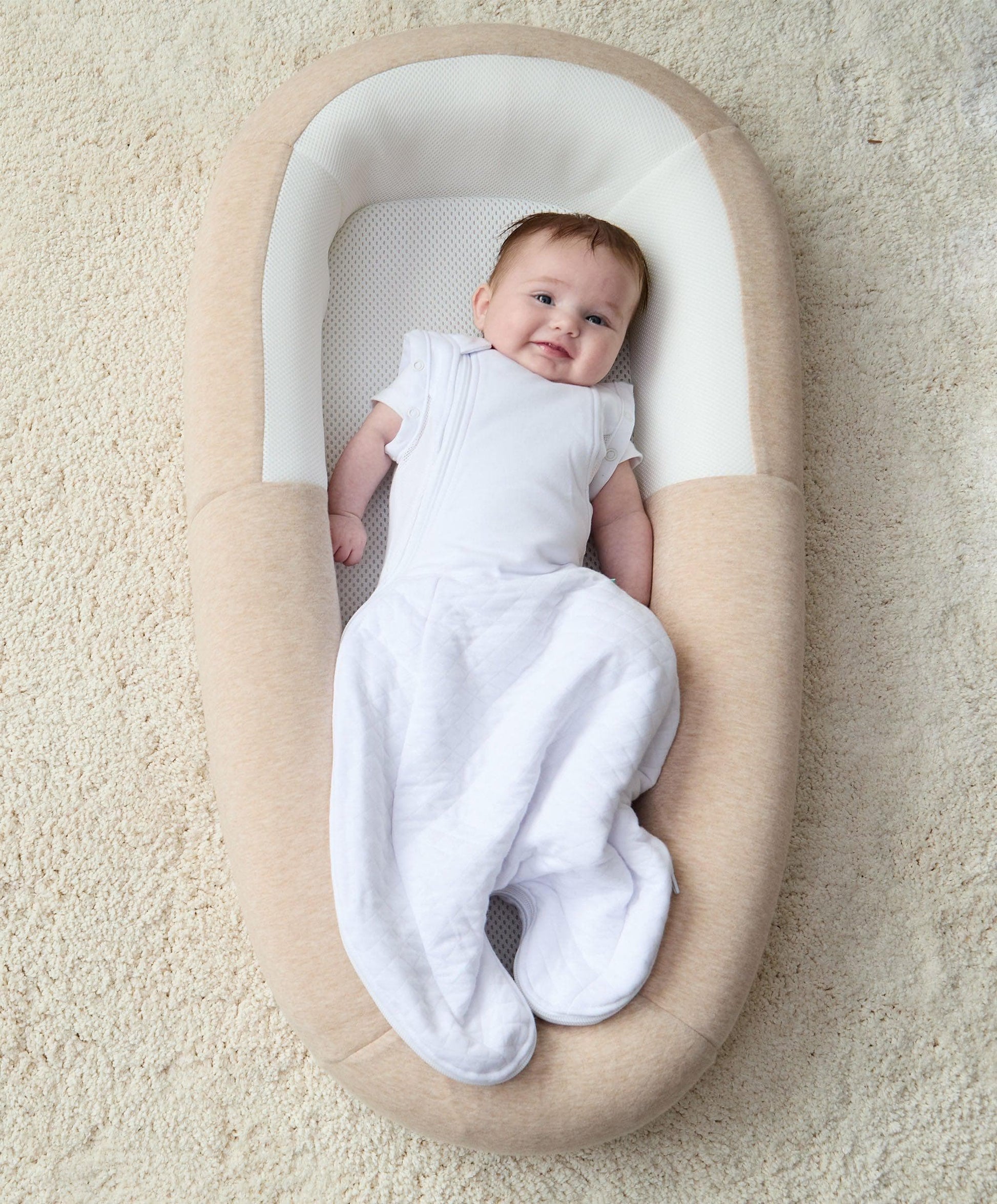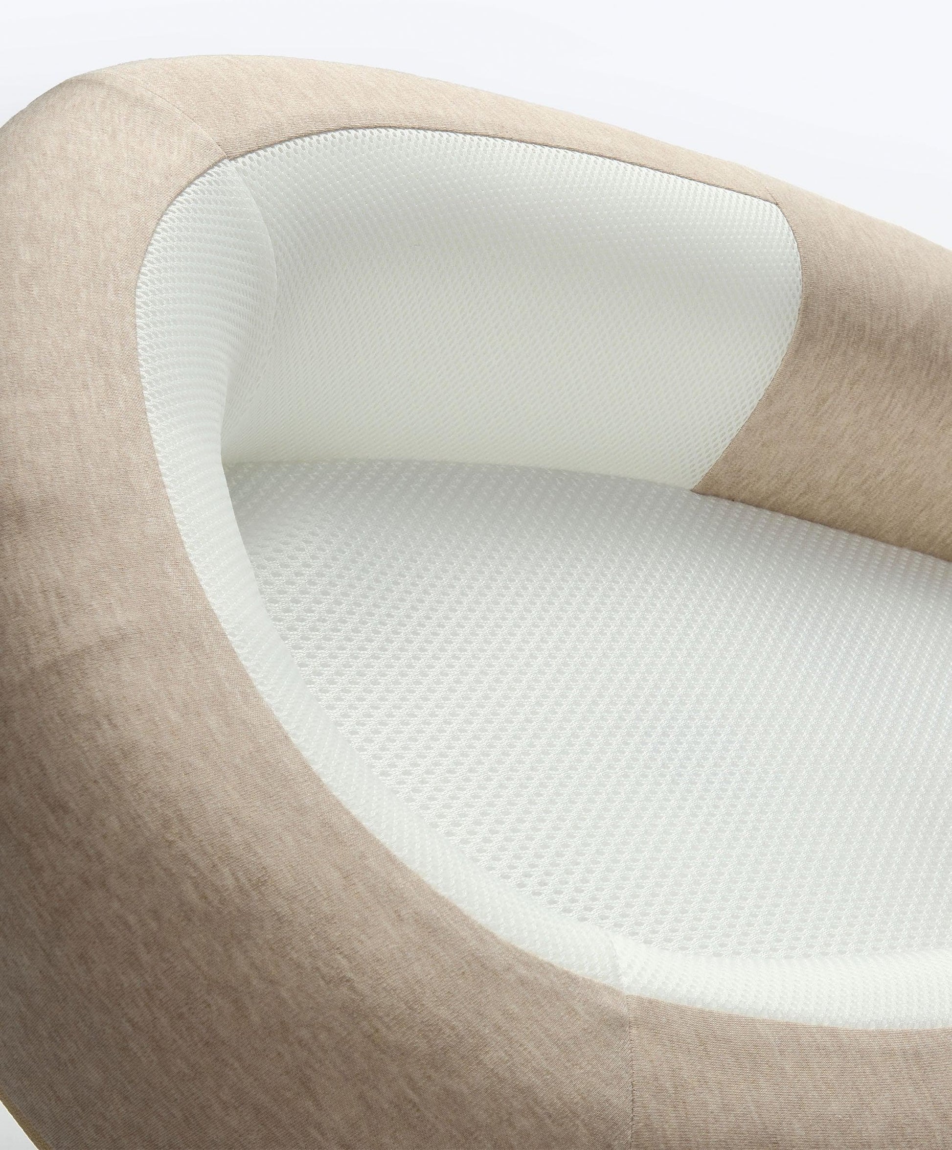 The bed features a fully breathable mesh base and sides which allow air to safely circulate, so baby can breathe easily and stay at a safe temperature all night. The raised sides are firm enough to prevent a little face pushing into them, but cosy enough to give baby sensory feedback helping them to sleep for longer.