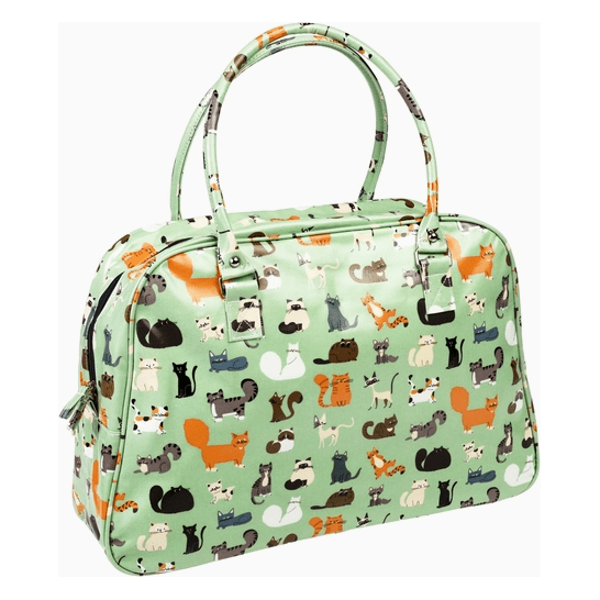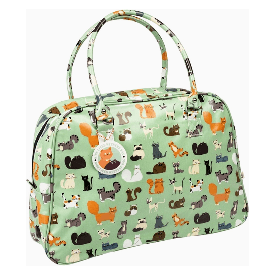 A weekend bag with illustrations of cats from our Nine Lives design.