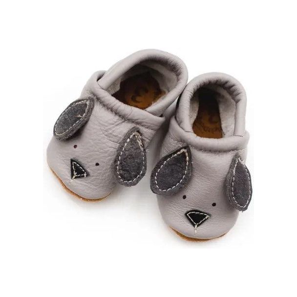 Starry Knight Cute Critter Leather Moccasin- Doggies Gray