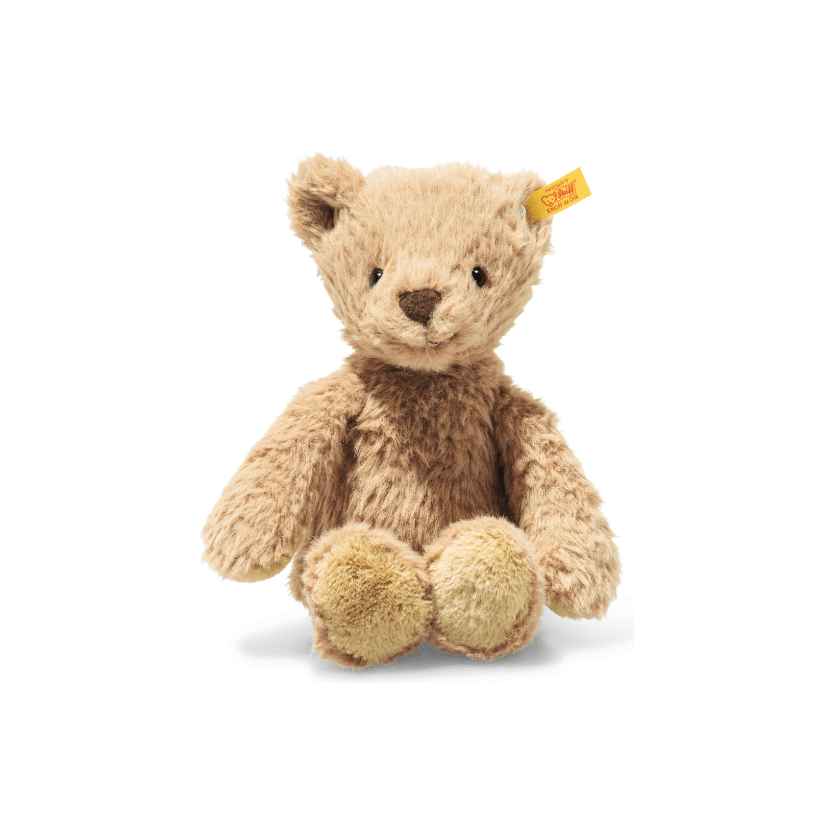 Our brown 8-inch Thommy Teddy is a classically styled bear that’s impossible not to hug. With his luxuriously soft coat, your child will want to hold him in their arms forever. But when you do have to put him aside (if only for a moment), he’ll sit upright, thanks to the little bean bags sewn inside. Thommy is made from silky soft caramel-colored plush, has an embroidered mouth, and a cute dark brown nose. And of course, he wears the famous Steiff quality trademark: the stainless steel "Button in Ear."