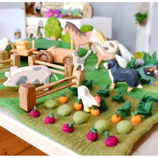 This felt horse is an excellent small world play toy, ideal for early childhood education and preschool settings. It helps develop fine motor skills, language development, and cognitive abilities through imaginative play.