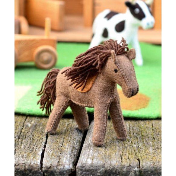 This felt horse is an excellent small world play toy, ideal for early childhood education and preschool settings. It helps develop fine motor skills, language development, and cognitive abilities through imaginative play.