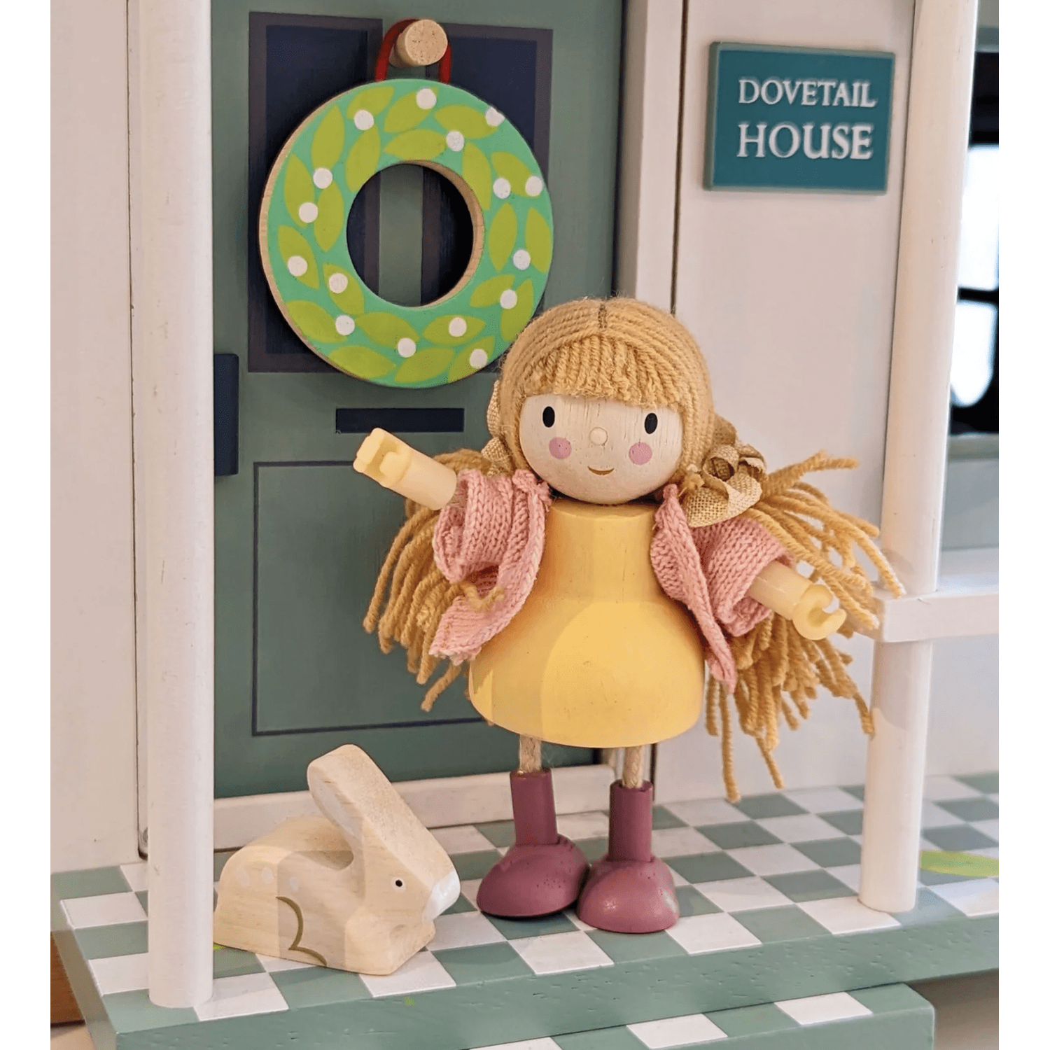 Say hello to Amy who love playing with her pets. Made from solid wood with beautiful quality knitted and jersey fabrics.