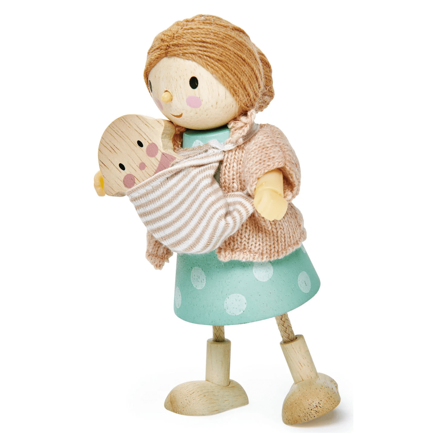 Say hello to Mrs Goodwood who is busy caring for her brand new baby. Made from solid wood with beautiful quality knitted and jersey fabrics.