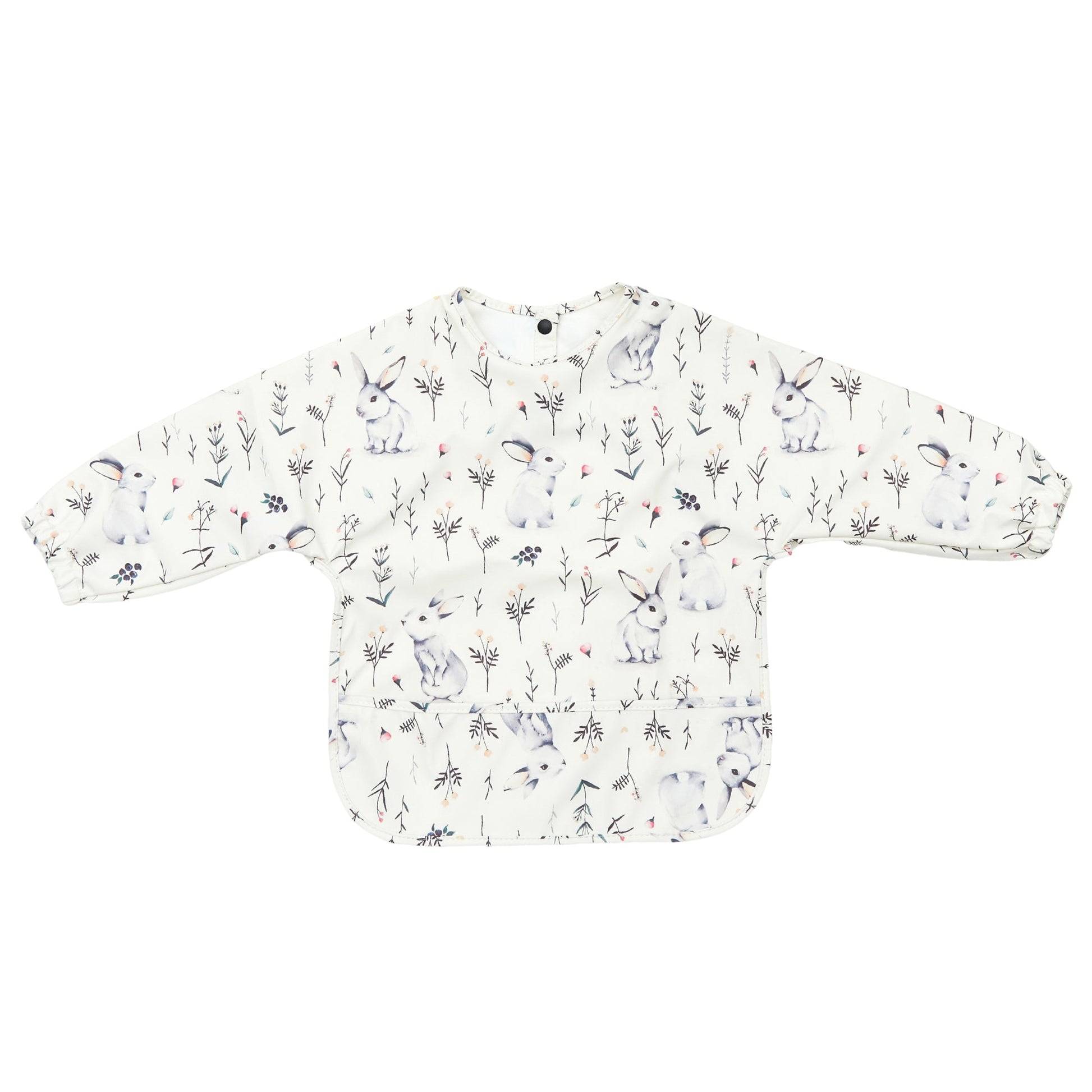 Waterproof Long Sleeve Baby Smock Bib in Bloom Bunnies
