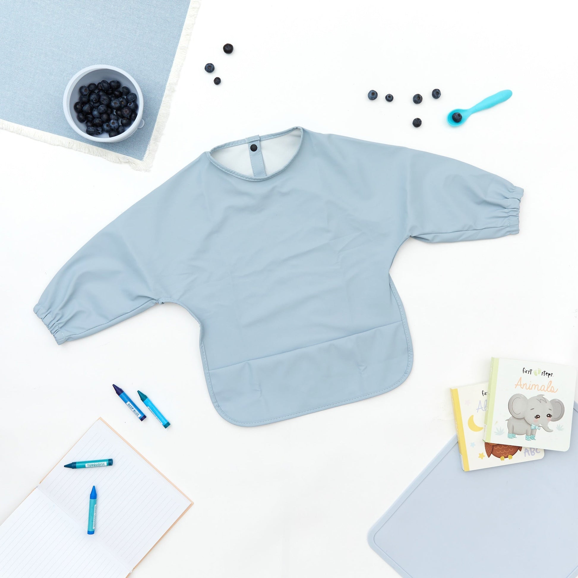 - Long sleeves: Provides full coverage for maximum mess protection.