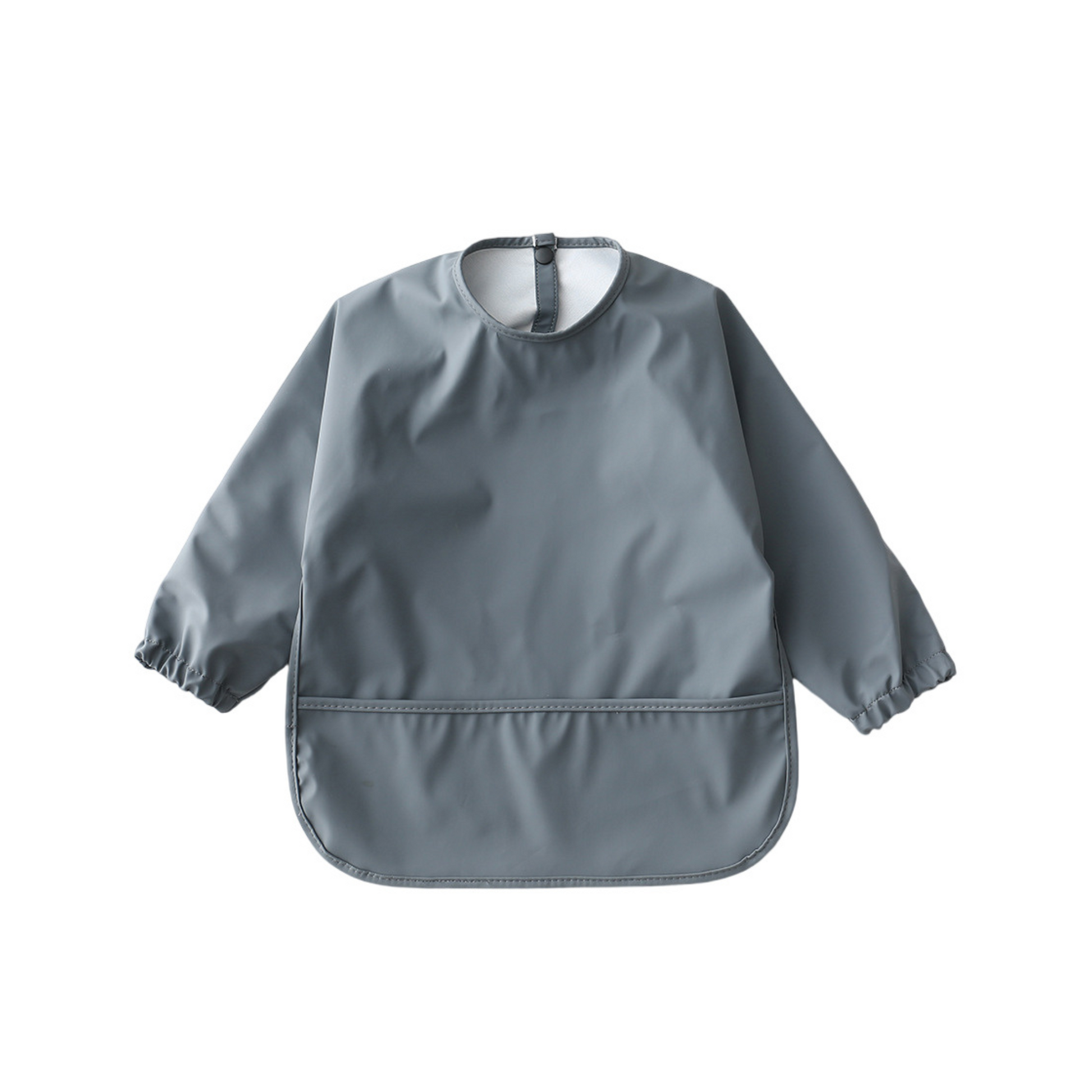 Waterproof Long Sleeve Baby Smock Bib in Shadow Slate