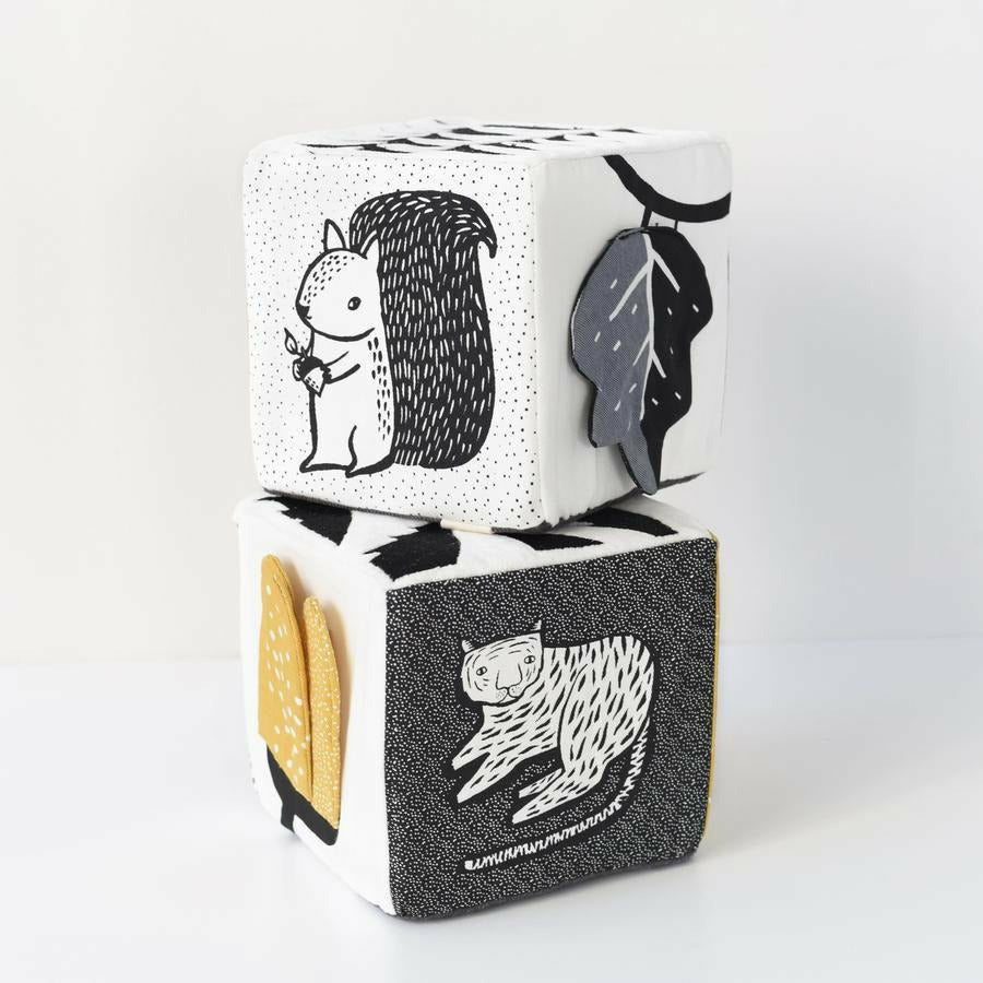Fox, trees, the woodland sleeps! So much to do and see in one large block. This soft fabric block is designed to delight baby's developing senses with high-contrast graphics, textures, taggies, and crinkles. Featuring multiple scenes and patterns of woodland life and animals.